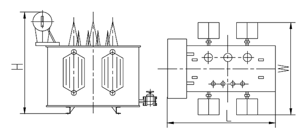 无储油柜,箱盖装有QYW型变压器保护装置(气体施放,压力保护和温度控制集一体的多功能保